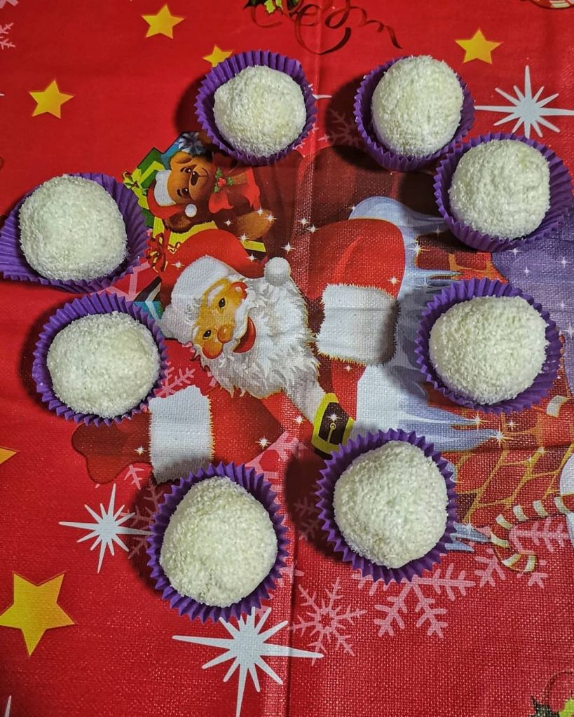 Umesiti glatko testo od jaja, jogurta, zejtina, praška za pecivo i brašna. Testo treba da odstoji oko 15 minuta, podeliti na dva dela pa od svake polovine treba napraviti 40 loptica, može i koja manje, više…! Svaku lopticu uvaljati u gustin.