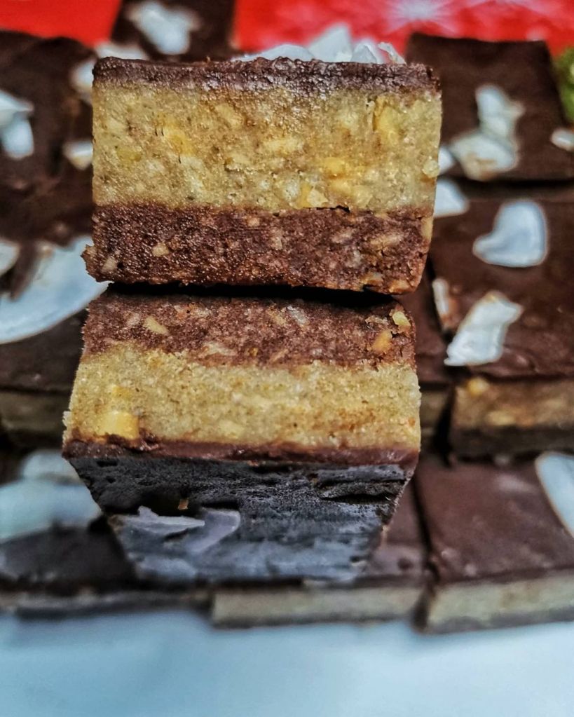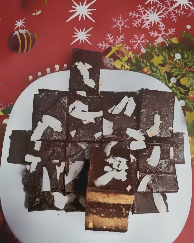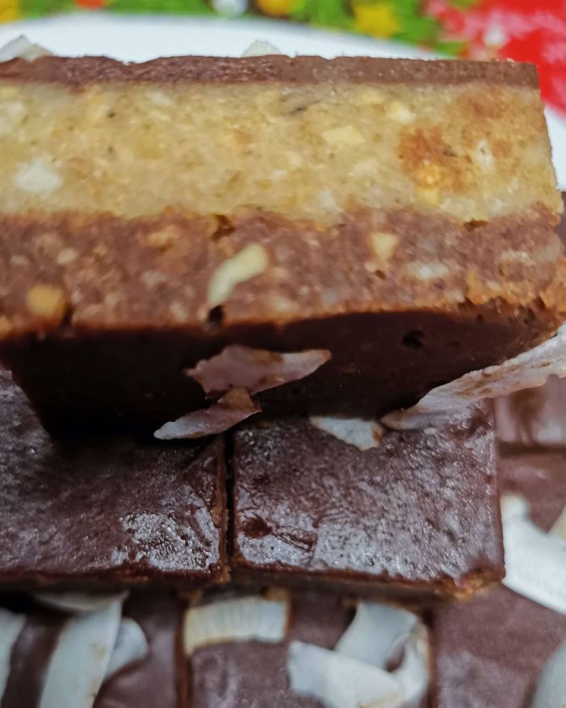 Izliti u pouljenu tepsiju ili pleh. Kad se ohladi iseći I možete ukrasiti orasima ili ih uvaljati u #kokos , mleveni #keks