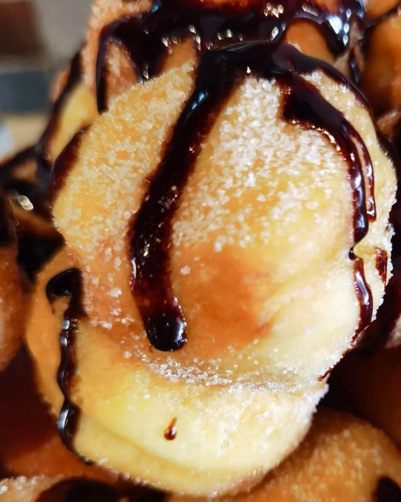Umutiti jaja i šećer vrlo malo pa dodati ulje i sjediniti U umućenu smesu dodati 3 kašike mleka i vanilin šećer, na kraju dodati 2 praška za pecivo i 5 kašike brašna sjediniti masu pa ostaviti u frižider da odstoji dva sata. Izvaditi posle dva sata pa dodati ostalo brašno, umešati brašno varjačom, pa istresti na pobrašnjenu radnu površinu i umesiti glatko testo. Ako vam se lepi za prste dodati još brašna dok ne dobijete fino testo koje se ne lepi za prste. Od gotovog testa kidati loptice, dobro ih dlanovima uvaljajte dok ne budu glatke, ako nisu glatke, pucaće.